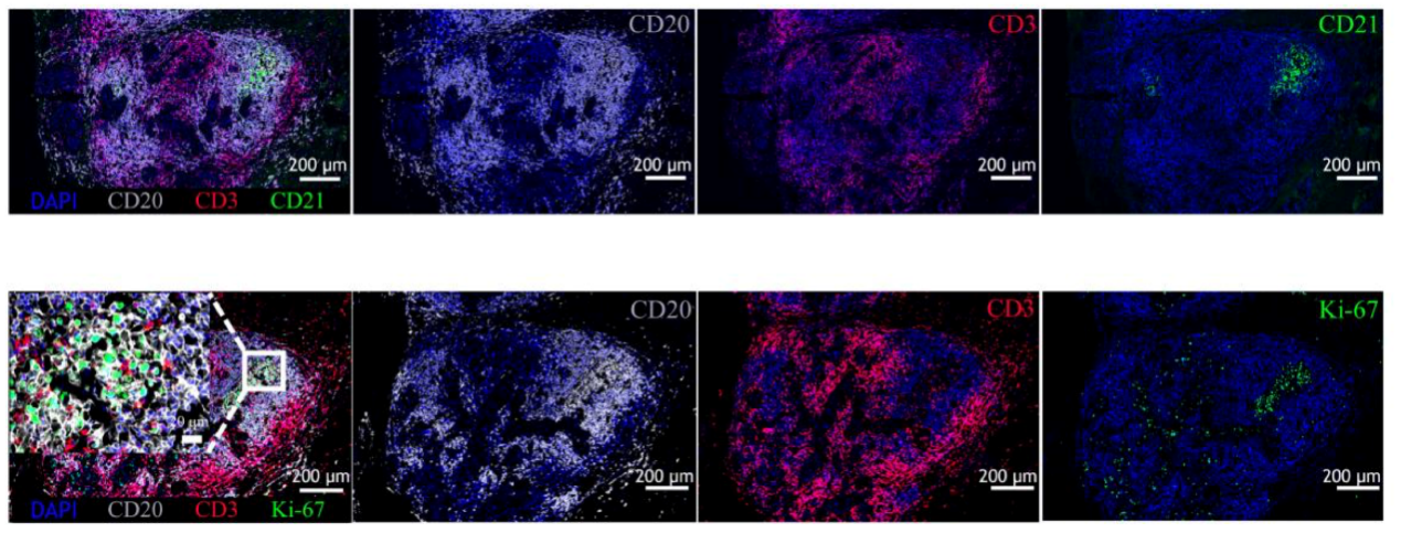 众所周知,T淋巴细胞所介导的适应性细胞免疫在肿瘤免疫应答中具有重要作用,但B淋巴细胞在肿瘤的发生、发展及治疗中所起到的作用是近年来才逐渐被关注到的,且存在很多争议。近来的研究表明,在肿瘤患者接受免疫治疗时,肿瘤内的B细胞和三级淋巴结构(TLSs)可能与更好的预后相关,但其中的细胞和分子机制目前仍不清楚。本实验室正致力于将人类TLS的多组学分析与小鼠肿瘤模型相结合,以剖析B淋巴细胞在肿瘤免疫中的具体作用。