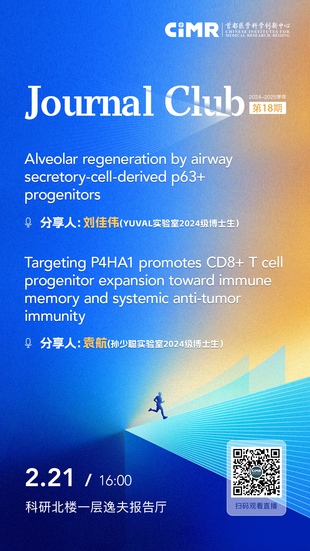 2024级博士研究生 袁航(孙少聪实验室),将探讨的文章是“Ma S, Ong LT, Jiang Z, Lee WC, Lee PL, Yusuf M, Ditzel HJ, Wang Y, Chen Q, Wang W, Wu X, Tan EY, Yu Q. Targeting P4HA1 promotes CD8+ T cell progenitor expansion toward immune memory and systemic anti-tumor immunity. Cancer Cell. 2025 Feb 10; 43(2): 213-231.e9. doi: 10.1016/j.ccell.2024.12.001.”