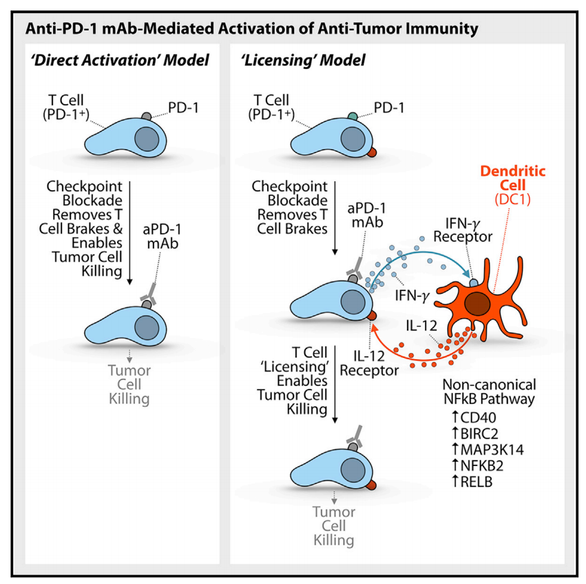 3. Garris, C.S., Arlauckas, S.P., Kohler, R.H., Trefny, M.P., Garren, S., Piot, C., Engblom, C., Pfirschke, C., Siwicki, M., Gungabeesoon, J., et al. (2018). Successful Anti-PD-1 Cancer Immunotherapy Requires T Cell Dendritic Cell Crosstalk Involving the Cytokines IFN-g and IL-12. Immunity 49, 1148–1161.e7.