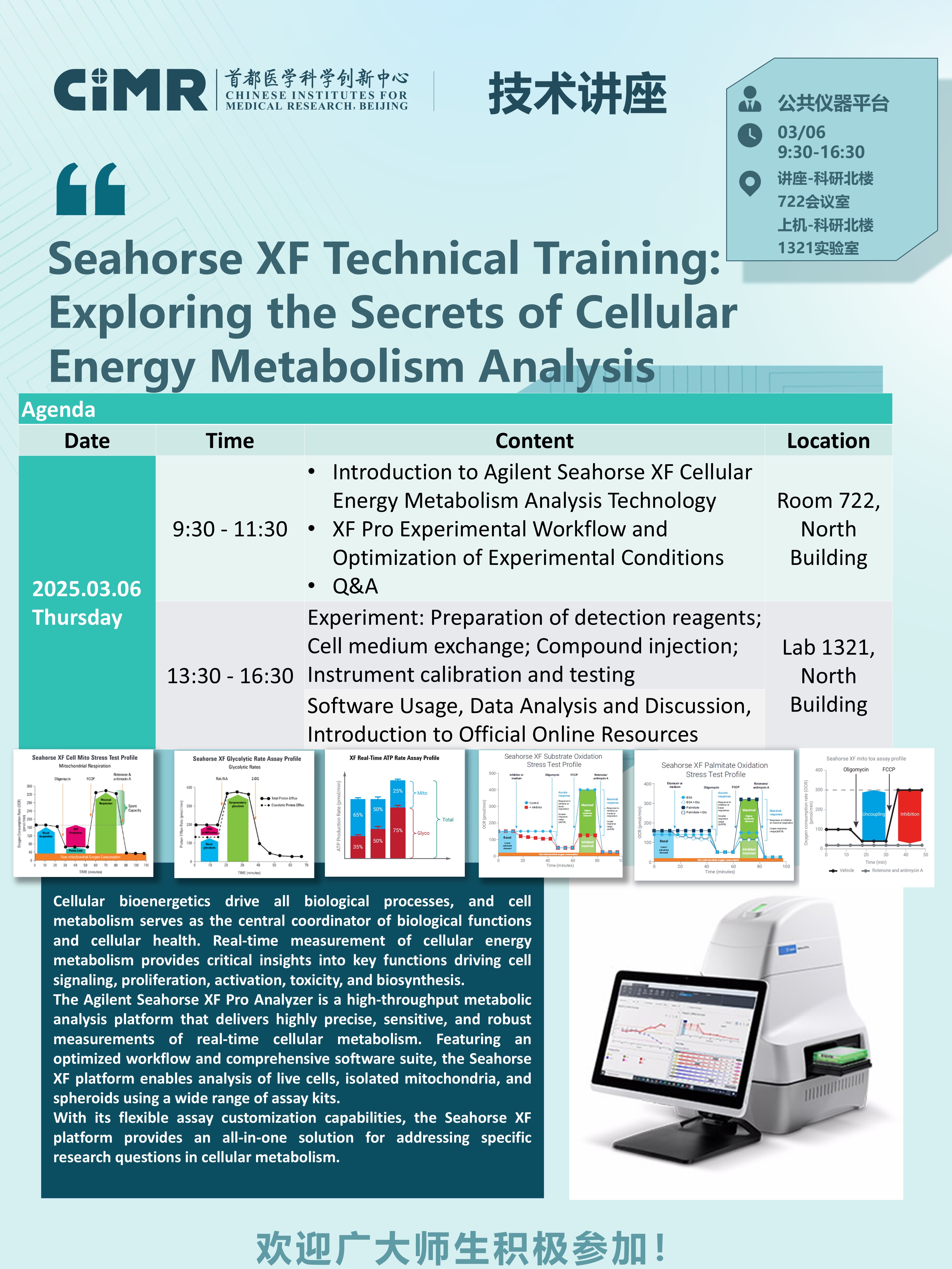 公共仪器平台 Seahorse XF已安装调试完毕,为更好了解该系统,将于2025年3月6日举办技术讲座培训,具体时间地点如下。