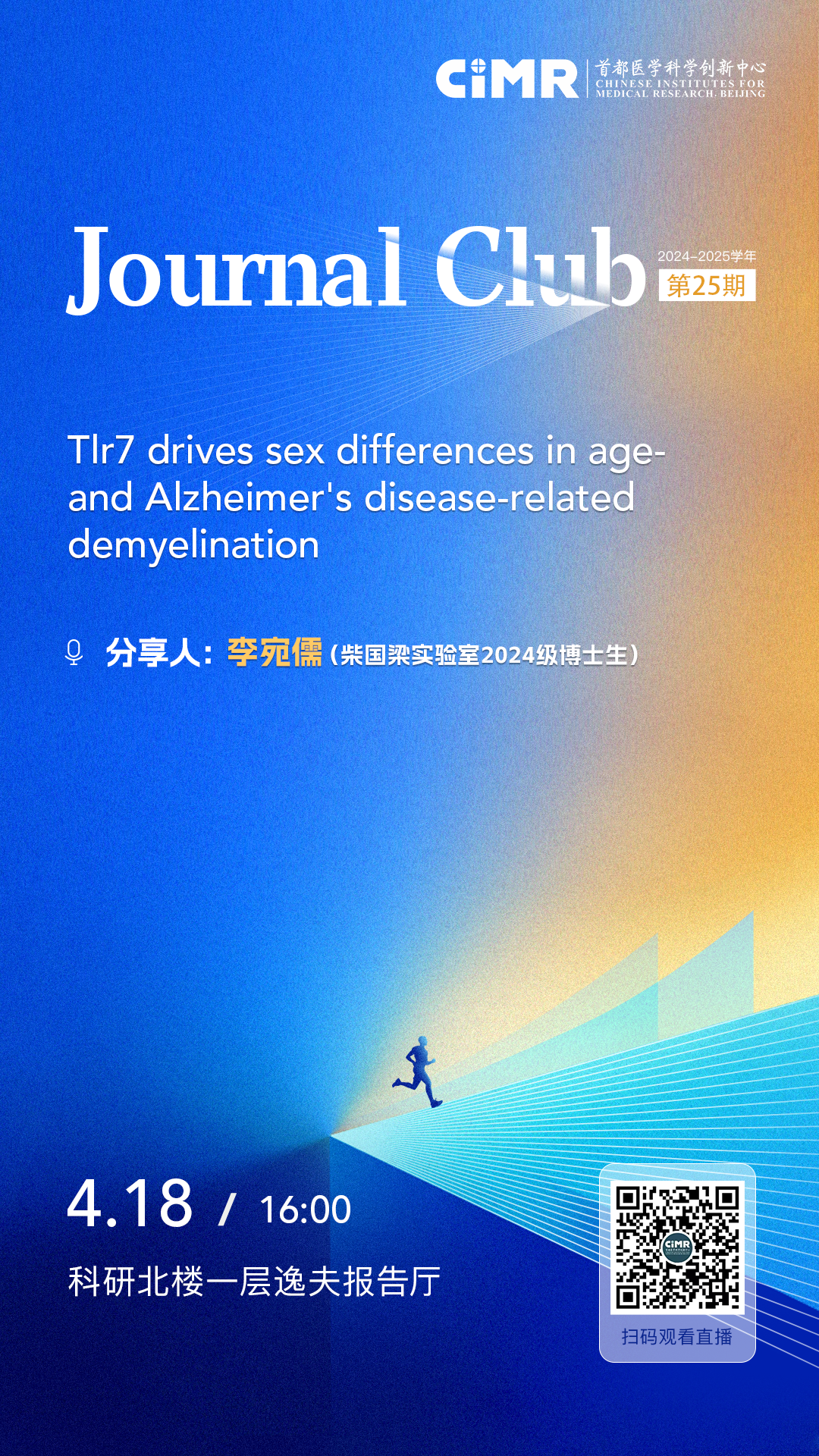 2024级博士研究生 李宛儒(柴国梁实验室),将探讨的文章是“Lopez-Lee C, Kodama L, Fan L, Zhu D, Zhu J, Wong MY, Ye P, Norman K, Foxe NR, Ijaz L, Yu F, Chen H, Carling GK, Torres ER, Kim RD, Dubal DB, Liddelow SA, Sinha SC, Luo W, Gan L. Tlr7 drives sex differences in age- and Alzheimer's disease-related demyelination. Science. 2024 Nov 29; 386(6725): eadk7844. doi: 10.1126/science.adk7844.”