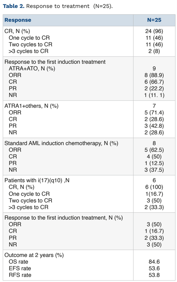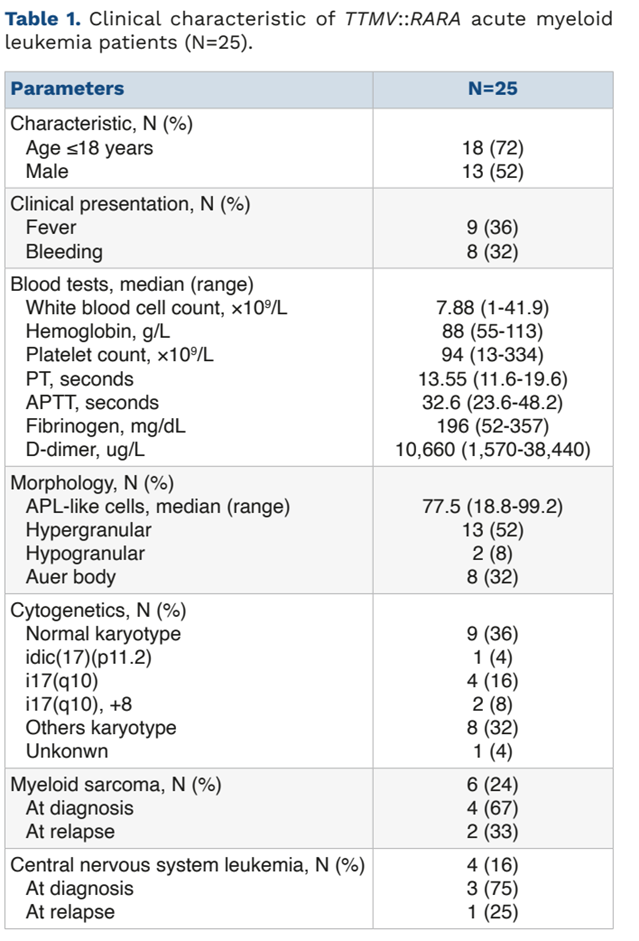 在治疗方面,相较于其他方案,该类患者对全反式维甲酸(ATRA)联合砷剂(ATO)治疗表现出较高敏感性,且有望改善生存时间。然而,该方案仍难以有效遏制高复发风险。造血干细胞移植可能作为潜在根治策略:在接受移植的11例患者中,9例实现长期生存(中位随访时间36个月)。