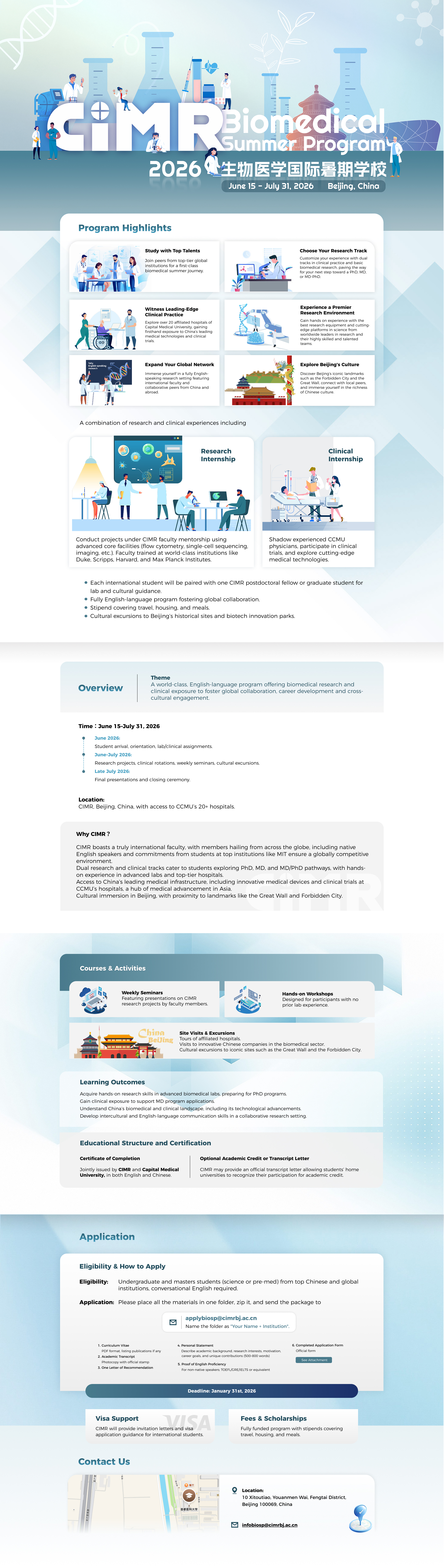 报名开启!2026 CIMR 生物医学国际暑期学校