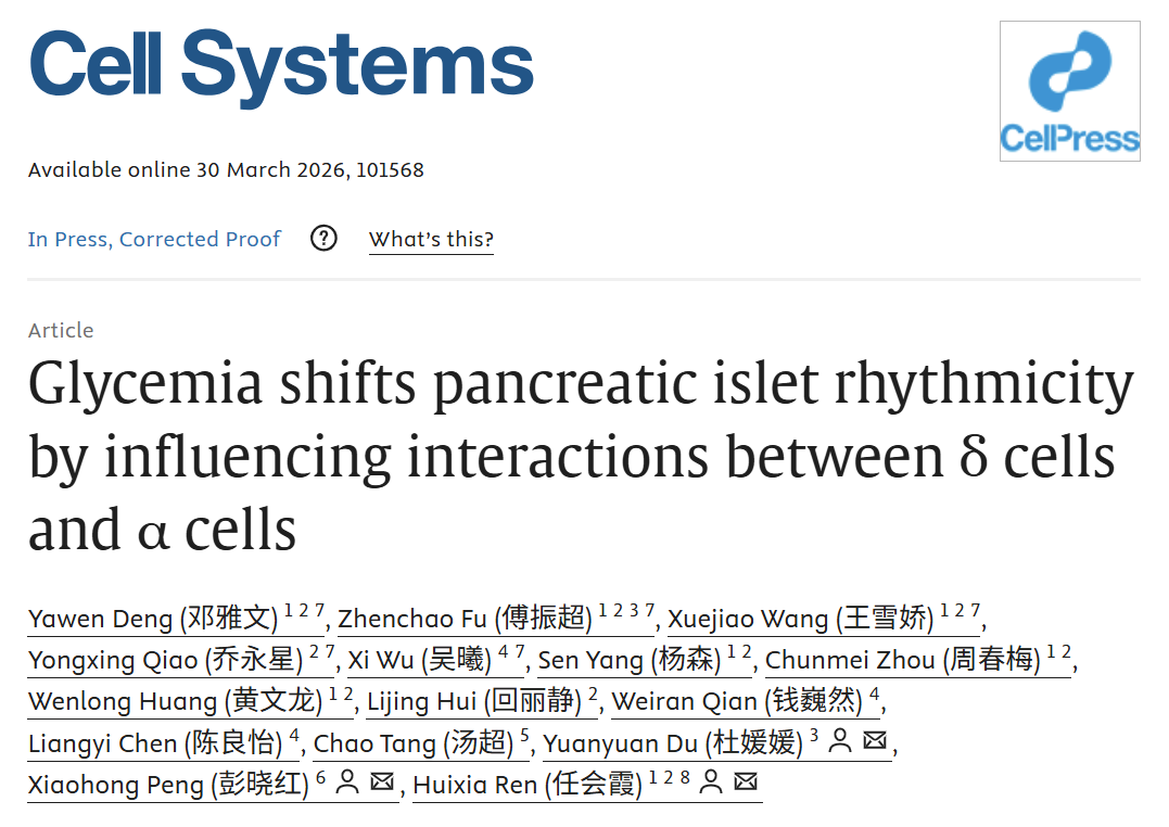 Cell Systems | 多胰岛在体成像揭示胰岛节律编码高血糖的机制:δ–α细胞互作介导慢-快振荡转换
